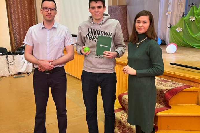 After watching the presentation video about the Cherepovetsles company, a quiz was held for students, where they answered questions with interest and received souvenirs.