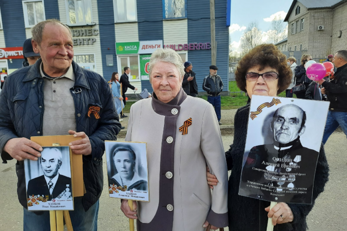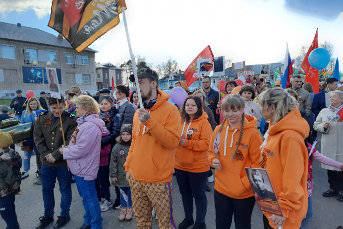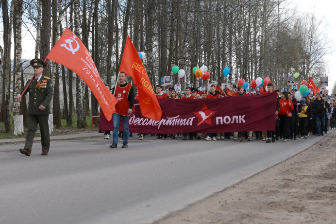 Праздничная программа началась с шествия колонны Бессмертного полка. Сотни местных жителей собрались на площади Революции и прошли победным маршем к памятнику воинам-землякам, погибшим в годы Великой Отечественной войны.