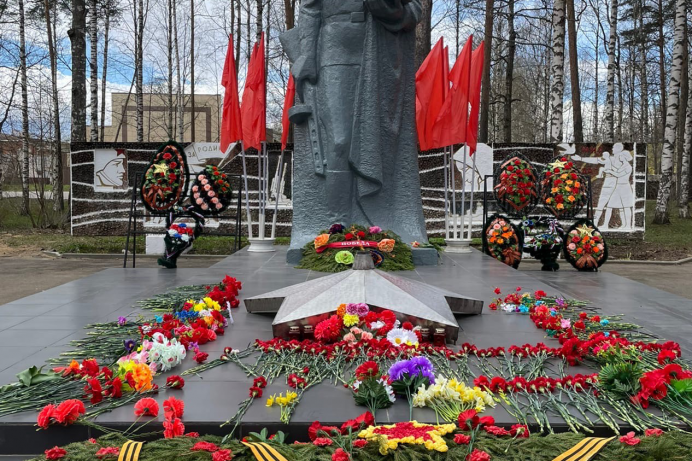 После шествия Бессмертного полка в парке состоялся праздничный Митинг, где представители Бабаевского леспромхоза возложили цветы и венки к памятным мемориалам города Бабаево.