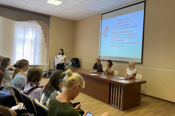 29 августа 2022 г. В главном корпусе Череповецкого лесомеханического техникума состоялось собрание для первокурсников и их родителей, в котором приняли участие представитель ГК «Череповецлес» HR-менеджер С.А. Шелофастова.