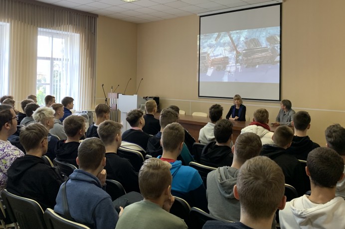 09 сентября 2022 г. в рамках акции «Поделись своим знанием» менеджеры HR-службы ГК «Череповецлес» Симона Шелофастова и Екатерина Гринько встретились со студентами 1 курса Череповецкого лесомеханического техникума им. В.П. Чкалова.